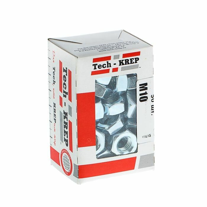 Гайка DIN934 шестигранная оцинк. М10 (50 шт) - коробка с ок. ( 0,53 кг) | 105249 Tech-KREP