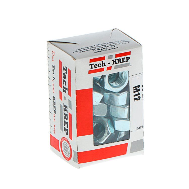 Гайка DIN934 шестигранная оцинк. М12 (30 шт) - коробка с ок. ( 0,469 кг) | 105250 Tech-KREP