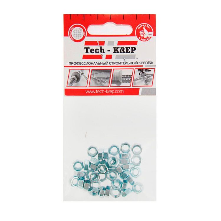 Гайка DIN934 шестигранная оцинк. М5 (40 шт) - пакет ( 0,053 кг) | 103024 Tech-KREP