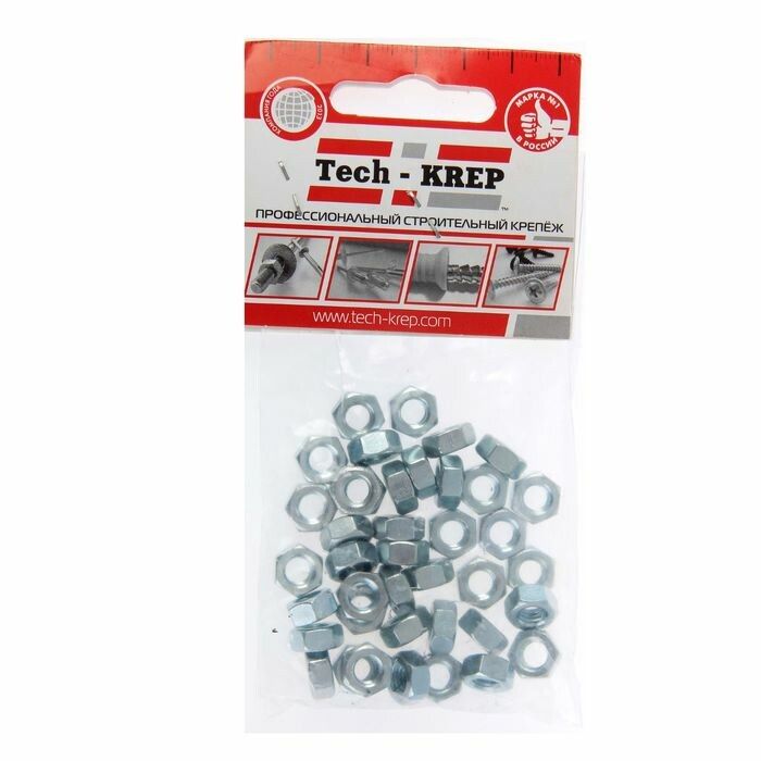 Гайка DIN934 шестигранная оцинк. М6 (40 шт) - пакет ( 0,091 кг) | 103025 Tech-KREP