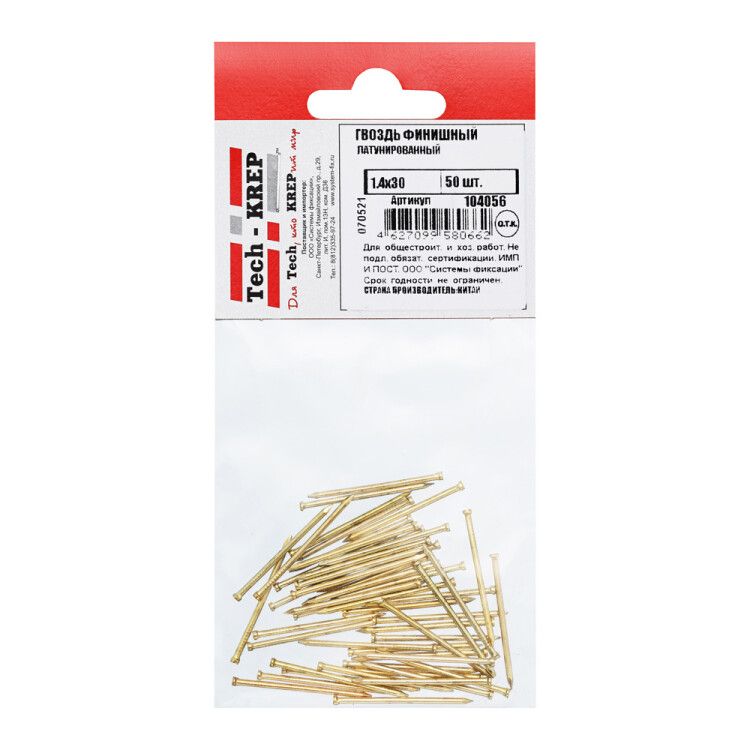 Гвоздь финишный латунированный 1,4х30 (50 шт) - пакет ( 0,026 кг) | 104056 Tech-KREP
