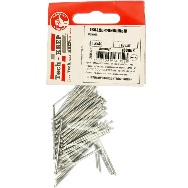 Гвоздь финишный оцинк. 1,8х40 (110 шт) - пакет ( 0,095 кг) | 108068 Tech-KREP