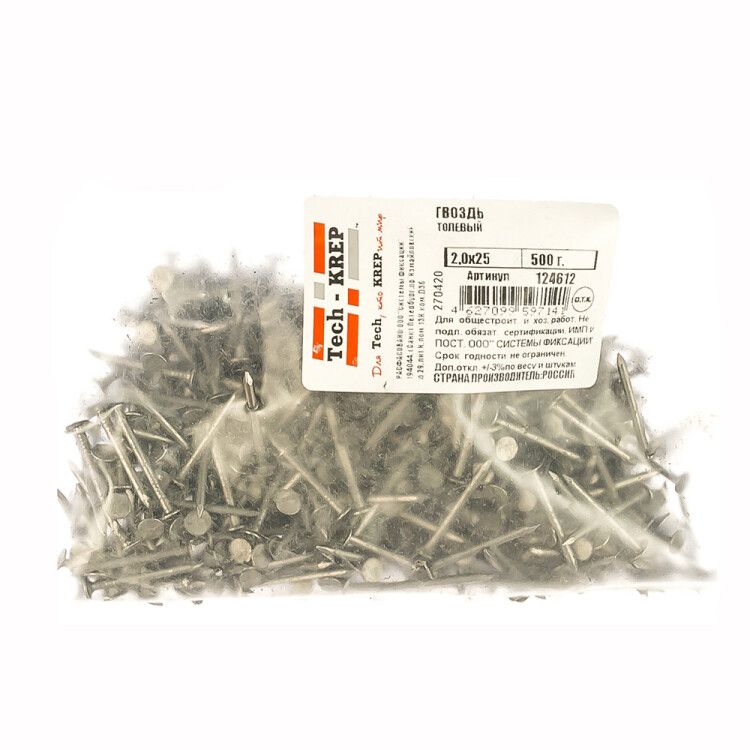 Гвоздь толевый 2,0х25 (500 г) - пакет | 124612 Tech-KREP