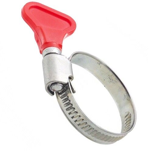Этот хомут имеет конструкцию с лентой и червячным замком. Вместо шестигранного болта с прямым или крестовым шлицем на головке винта установлена ручка-бабочка. Он изготовлен из нержавеющей стали, что обеспечивает его прочность и долговечность.
