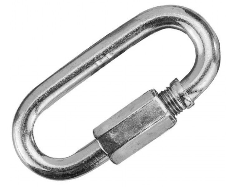 Карабин винтовой М8 - это универсальное крепление, предназначенное для быстрого ремонта и увеличения длины цепей, крепления такелажа и соединения тросов. Он изготовлен из углеродистой стали с антикоррозионным цинковым покрытием, что обеспечивает его долговечность и надежность.