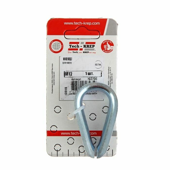 Коуш DIN6899 М12 (1шт) - ярлык | 102756 Tech-KREP подходит как для стальных канатов, так и для канатов из растительного или синтетического сырья. Он обладает высокой прочностью и гарантирует безопасность при использовании.