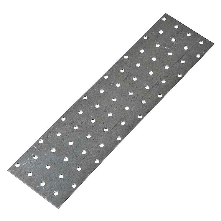 Особенностью этой пластины является наличие отверстий различного диаметра, благодаря которым вы можете использовать саморезы, гвозди и анкерные болты для установки. Монтаж легкий и быстрый, не требуется специальный инструмент.