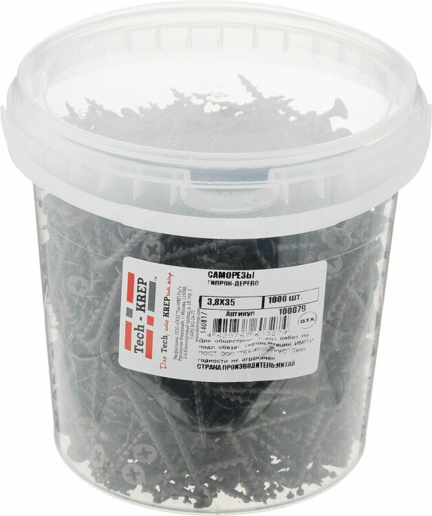 | Саморез ШСГД 3,8х35 (1000 шт) - ведро ( 1,628 кг) | 100079 | Tech-KREP | 08.01.2026 | 27 уп. | 857,18 ₽ | уп. | от 1 дня |