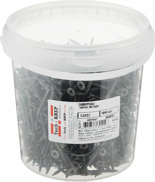 | Саморез ШСГМ 3,5х32 (1000 шт) - ведро ( 1,568 кг) | 100091 | Tech-KREP | 08.01.2026 | 1000 шт. | 0,86 ₽ | шт. | от 1 дня |