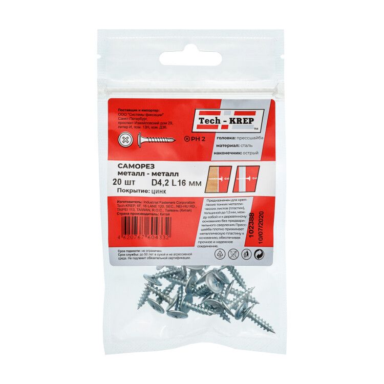 Саморез для тонкого металла 4,2×16 остроконечный (20 шт) – пакет от Zitar, Tech-KREP и Тех-КРЕП предназначен для надёжного крепления металлических деталей толщиной до 0,9 мм без предварительного сверления. Подходит для ремонта, сборки оборудования и мебели.