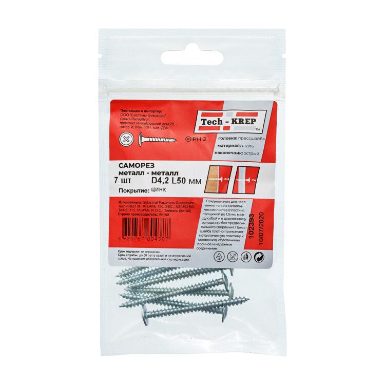 | Саморез по металлу 4,2х50 остроконечный (7шт) - пакет - 102393 | 07.03.2026 | Под заказ | 22,74 ₽ | уп. | от 30 дней |
