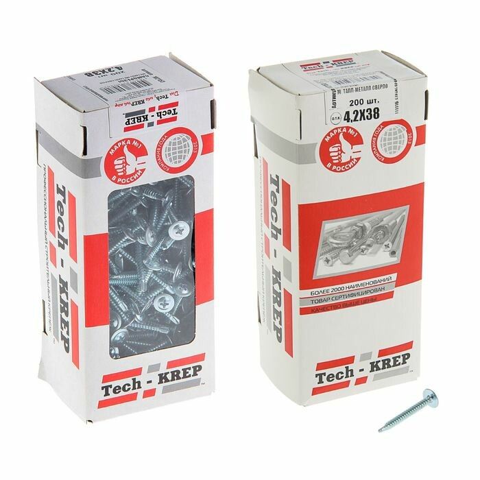 Саморез по металлу сверлоконечный 4,2х38 (200 шт) от Zitar, Tech-KREP и Тех-КРЕП предназначен для надёжного соединения тонких металлических деталей без предварительного сверления. Удобен для монтажа в условиях ремонта, сборки оборудования и производства мебели.