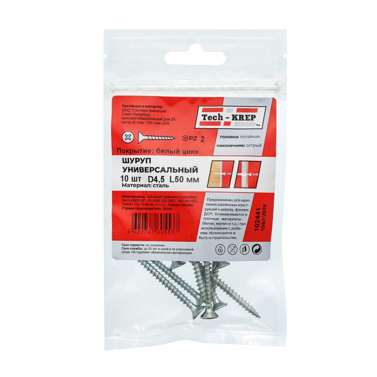 | Шуруп универсальный 4,5х50 потайная головка, остроконечный, оцинкованный (10шт) - пакет - 102441 | 07.03.2026 | Под заказ | 23,95 ₽ | уп. | от 30 дней |