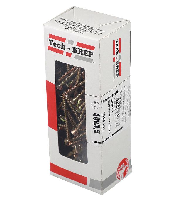 | Саморезы универсальные 40х3,5 мм (200 шт) желтые - коробка с окном ( 0,316 кг) | 102236 | Tech-KREP | 12.12.2025 | 2600 шт. | 0,94 ₽ | шт. | от 1 дня |