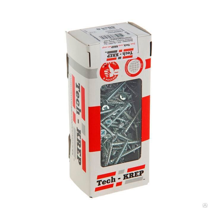 Саморез универсальный Tech-KREP 4x40 мм оцинкованный с потайной головкой (артикул 102182) - надёжный крепёж для быстрого и прочного соединения материалов без предварительного сверления в мягких основаниях. Подходит для сборки мебели, ремонта оборудования и строительных работ. Упакован в коробку с окном для удобного контроля количества.