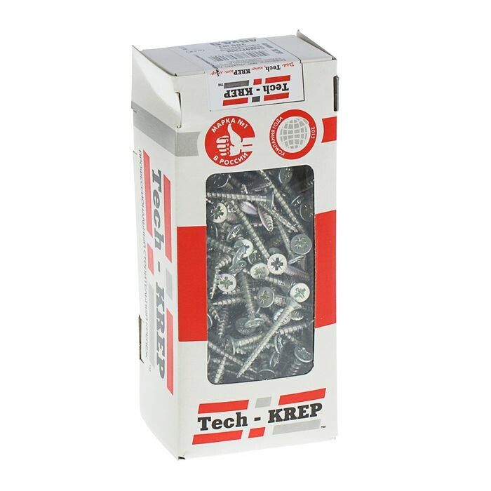 Саморез универсальный Tech-KREP 4,5x40 мм с потайной головкой - надёжный крепёж для фиксации материалов в строительстве, мебельном производстве и ремонте. Упакован по 200 штук, оцинкованный, совместим с отверткой PZ2. Артикул 102191.