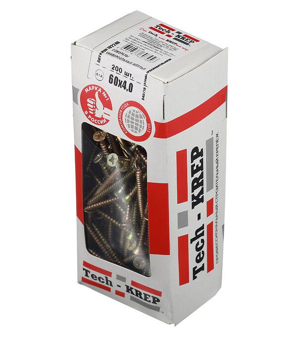 Саморез универсальный Tech-KREP 60×4 мм с потайной головкой и остроконечным концом - надежный крепеж для быстрого соединения дерева, пластика, металла и гипсокартона. Упаковка содержит 200 штук, что удобно для масштабных работ. Желтопассивированное покрытие обеспечивает антикоррозийную защиту, а шлиц PZ2 совместим с большинством отверток. Артикул 102248 соответствует серии Tech-KREP, известной стабильным качеством крепежа.