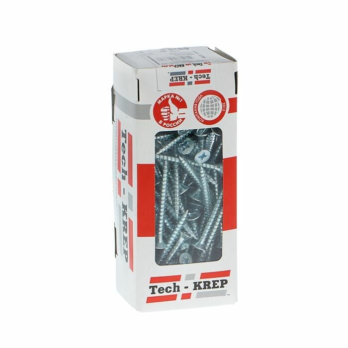 Саморез универсальный Tech-KREP 5.0×60 мм с потайной головкой и оцинкованным покрытием (арт. 102201, 100 шт.) предназначен для прочного и долговечного крепления металла, дерева и других материалов без предварительного сверления. Подходит для сборки мебели, монтажа конструкций и ремонта.
