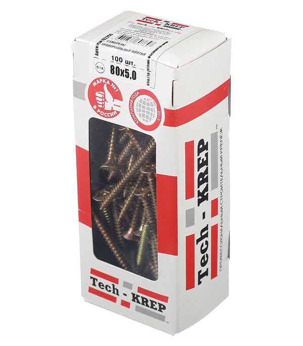 Саморез универсальный Tech-KREP 5×80 мм с потайной головкой и остроконечным концом - надежный крепеж для быстрого соединения древесины, пластика и других мягких материалов без предварительного сверления. Упаковка содержит 100 штук, что удобно для масштабных работ. Артикул 102266 соответствует сериям Zitar и Тех-КРЕП, обеспечивая совместимость с аналогичными продуктами.
