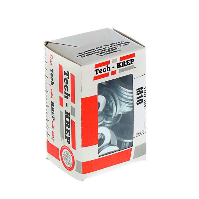 Шайба DIN125а плоская оцинк. М10 (100 шт) - коробка с ок. ( 0,367 кг) | 105261 Tech-KREP