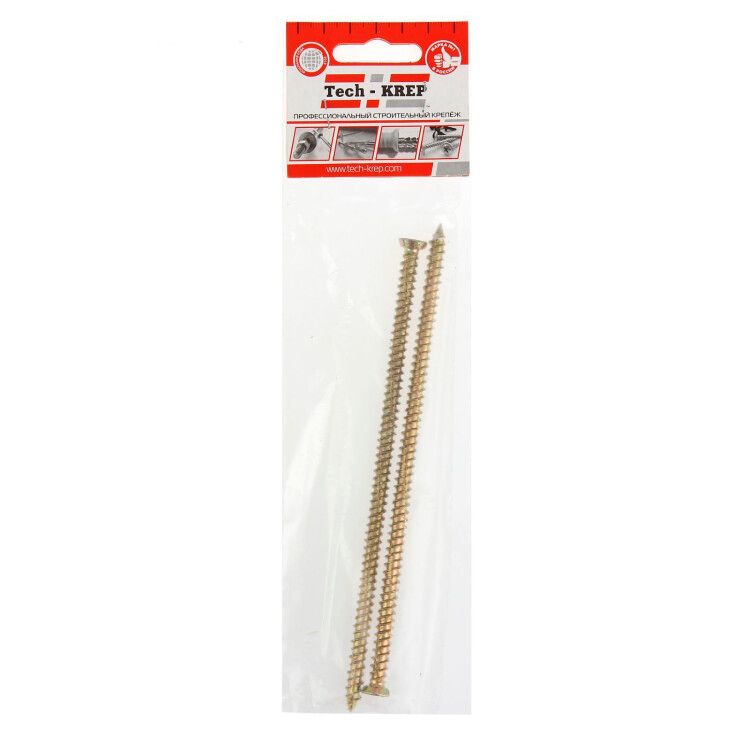 Шуруп по бетону 7,5х182 (2 шт) - пакет Tech-Krep (0,069 кг) | 124363 Tech-KREP - это надежные крепежные элементы, предназначенные для крепления оконных и дверных рам из дерева, пластика или алюминия. Они изготовлены из стали с упрочнением поверхностного слоя, что обеспечивает высокую прочность и долговечность.
