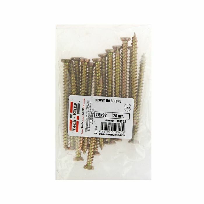 Шуруп по бетону 7,5х92 потайная головка, остроконечный (20шт) - пакет 124362 Tech-KREP