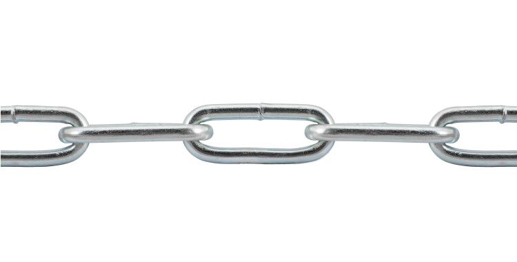 Цепь длиннозвенная DIN763 4 мм оцинкованная 3 м от Tech-KREP - это легкая, устойчивая к коррозии цепь из углеродистой стали с цинковым покрытием, предназначенная для крепления, фиксации и регулировки неответственных конструкций в быту, на стройке и в промышленности.