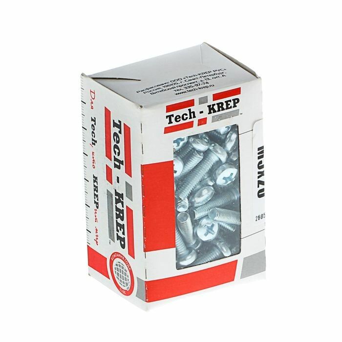 Винт DIN7985 с полукруглой головкой оцинк. М5х20 (100 шт) - коробка ок. Tech-K ( 0,424 кг) | 105222 Tech-KREP