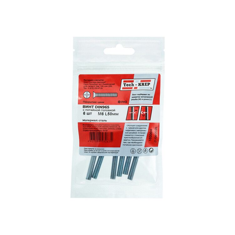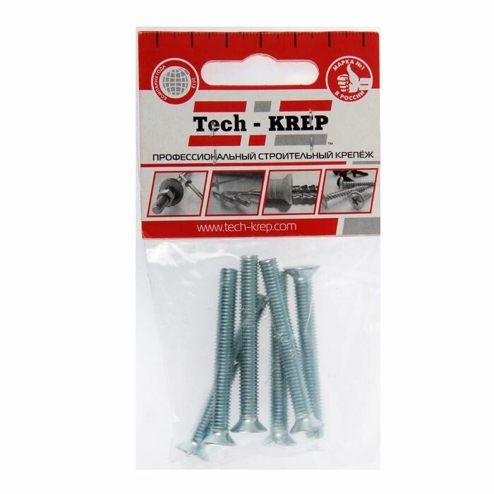 Винт DIN965 с потайной головкой оцинк. М6х50 (6 шт) - пакет ( 0,062 кг) | 103004 Tech-KREP