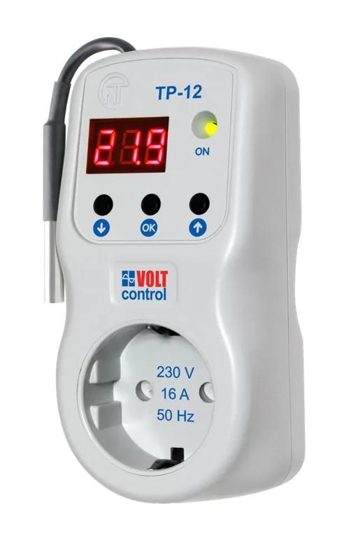 Терморегулятор в розетку ТР-12-3 с функцией реле напряжения 16А датчик сверху 10см НовАтек-Электро 3425606120-3