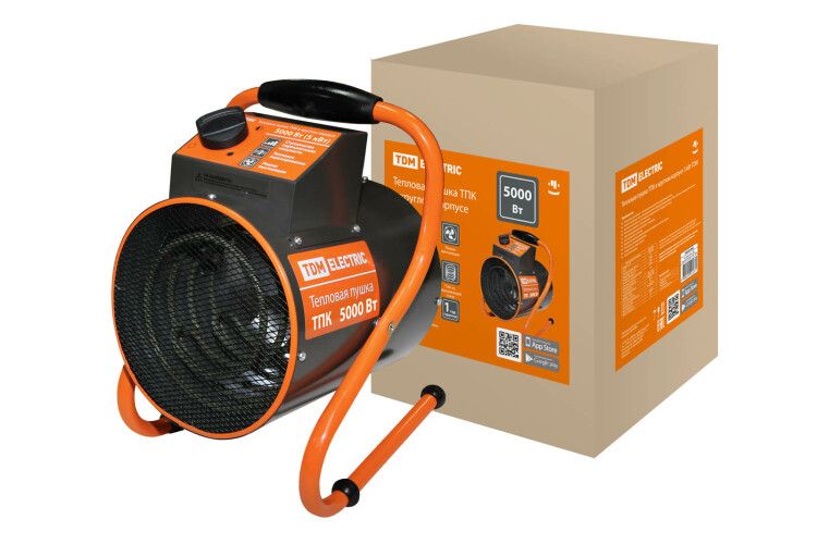 Тепловая пушка в круглом корпусе 5 кВт от TDM ELECTRIC (артикул sq2520-0003) - это мобильный источник принудительного теплового воздуха для временного обогрева больших помещений. Устройство сочетает простую эксплуатацию, надёжную защиту и эффективный нагрев за счёт высококачественного ТЭНа и мощного вентилятора.