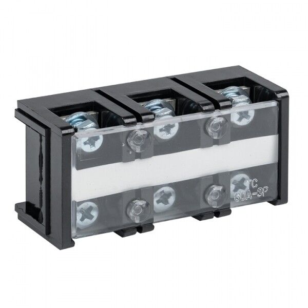 Терминал клеммный до 16 мм2 60 A 3 клеммные пары (артикул tc-603) совместим с DIN-рейкой типа TS35/7,5 и TS35/15. Монтаж выполняется просто: защёлкивается на рейку, затем в каждый из трёх входов вставляется подготовленный проводник и затягивается винт отверткой. Для лучшего контакта рекомендуется использовать наконечники НШВИ или НШВ, особенно при работе с многожильными проводами. Каждая пара клемм - самостоятельный полюс, что позволяет собирать раздельные цепи без перемычек.