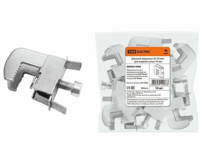 - Артикул sq0826-0008 от TDM ELECTRIC - единственный вариант в этой категории с таким сочетанием сечения и толщины шины - аналоги часто имеют меньшую ширину зажима