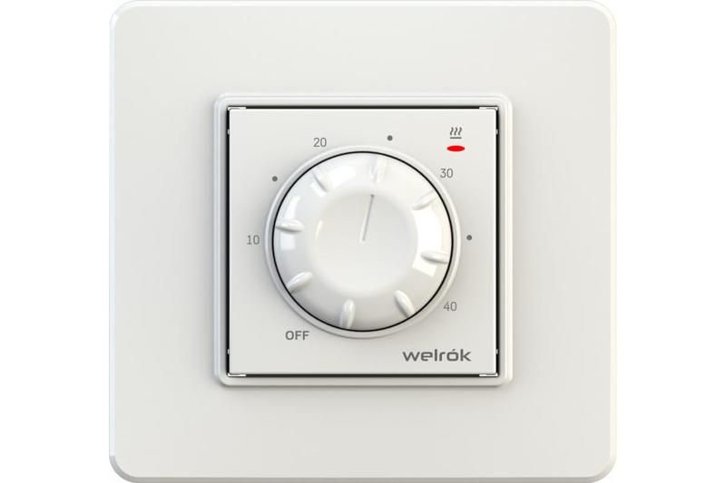 Терморегулятор для теплого пола комнатный от бренда Welrok (артикул 4660251140045) - механическое устройство для точного контроля температуры напольного отопления в жилых помещениях. Устройство сочетает простую эксплуатацию с надежной конструкцией и подходит для скрытой установки в стену.