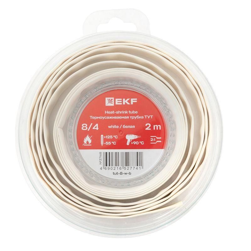 Термоусаживаемая трубка ТУТ нг 8/4 белая ролик 2 м |tut-8-w-b|EKF