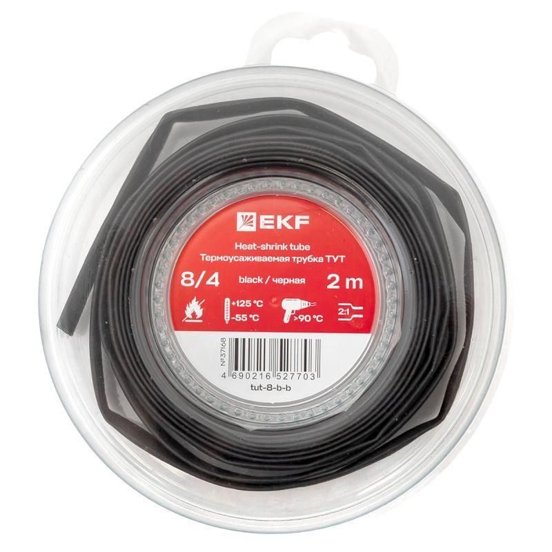 Термоусаживаемая трубка ТУТ нг 8/4 черная ролик 2 м |tut-8-b-b|EKF