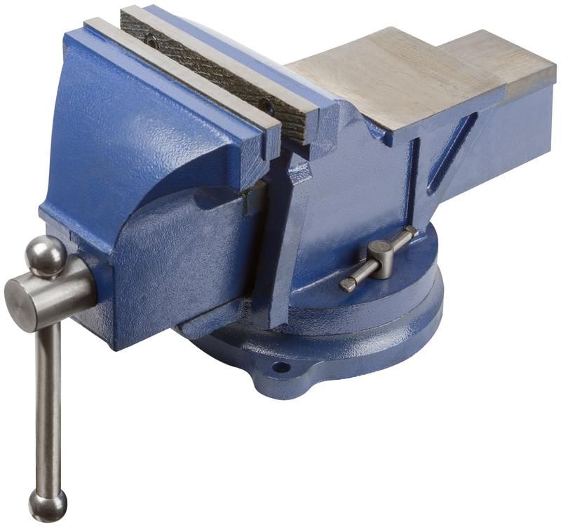 Корпус тисков изготовлен из прочного чугуна, что обеспечивает стабильность и долговечность инструмента. Губки из стали инструментальной также гарантируют прочность и надежность при сжатии деталей.