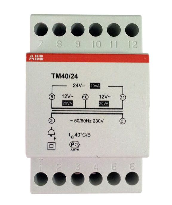 Трансформатор модульный звонковый 220/24(12+12) 40VA - 2CSM228785R0802 ABB TM40/24