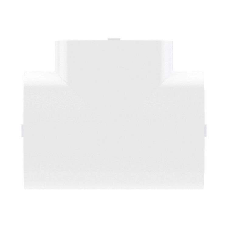 Тройник для кабель-канала 90х50 мм с разделителем совместим исключительно с кабель-каналами серии In-liner Front того же размера - 90×50 мм. Крепится путём защёлкивания на торец основного канала. Для надёжной фиксации рекомендуется предварительно выровнять кромки канала перед сборкой. Перфорация позволяет дополнительно закрепить элемент саморезами при необходимости усиления жесткости. Крышка устанавливается после прокладки кабелей - она вставляется внутрь профиля и фиксируется за счёт упругости материала.