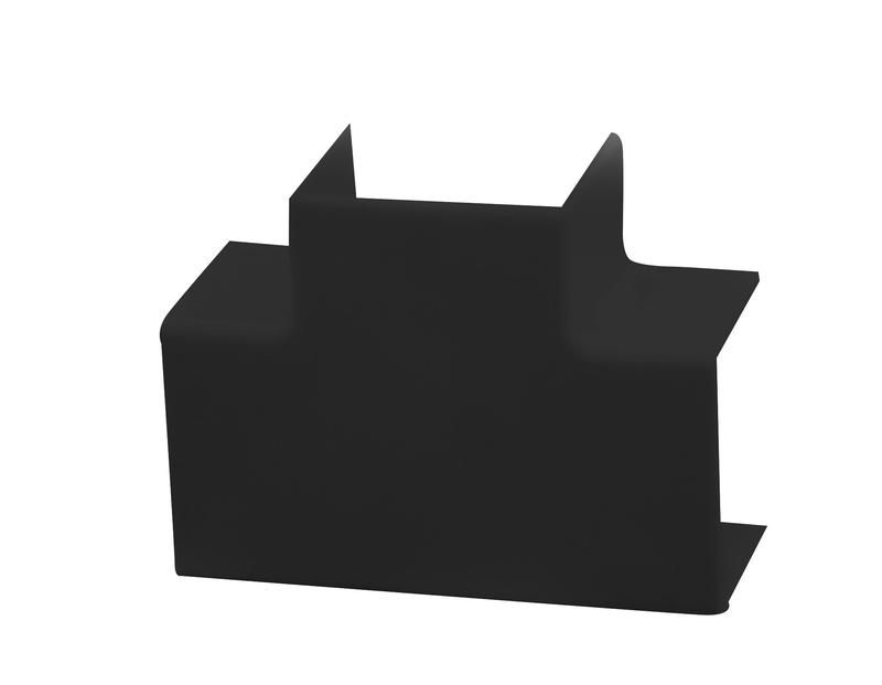 Тройник накладной 90 град. для кабель-канала РКК 25х16 черный от бренда Рувинил (артикул трн-25х16-ч) предназначен для создания поворотов в наружной проводке, позволяя удобно менять направление кабельного канала без разрезания профиля.