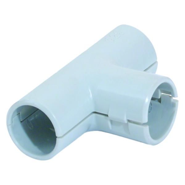Тройник соединительный для трубы 32 мм IP44 используется для соединения трёх участков трубопровода под углом 90 градусов - один вход, два выхода. Применяется в системах защиты кабелей: силовых, слаботочных, сигнальных. Особенно актуален там, где требуется распределить провода в двух направлениях без дополнительных переходников.
