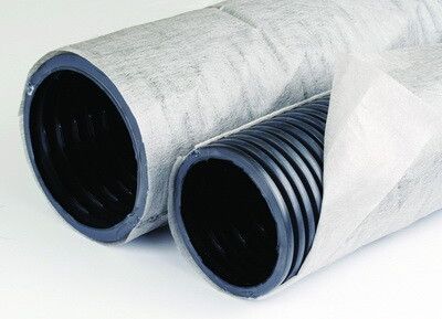 - Геофильтр: плотный геотекстиль, обволакивающий трубу - предотвращает попадание грунта внутрь, продлевает срок службы