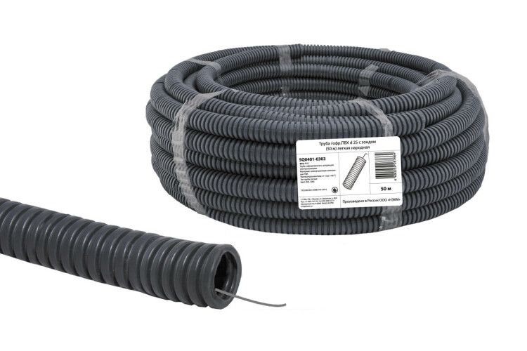 Труба гибкая гофрированная ПВХ 25мм с протяжкой лёгкая народная (50м) | SQ0401-0303 TDM