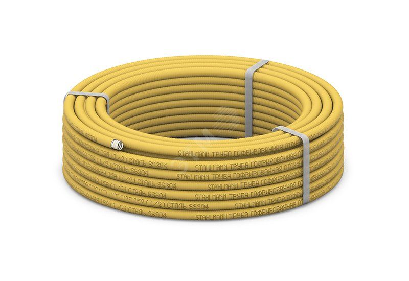 Труба гофр. из нерж.стали SS304 20A, отожженная в оболочке желтая, 30м - 2217498 Stahlmann