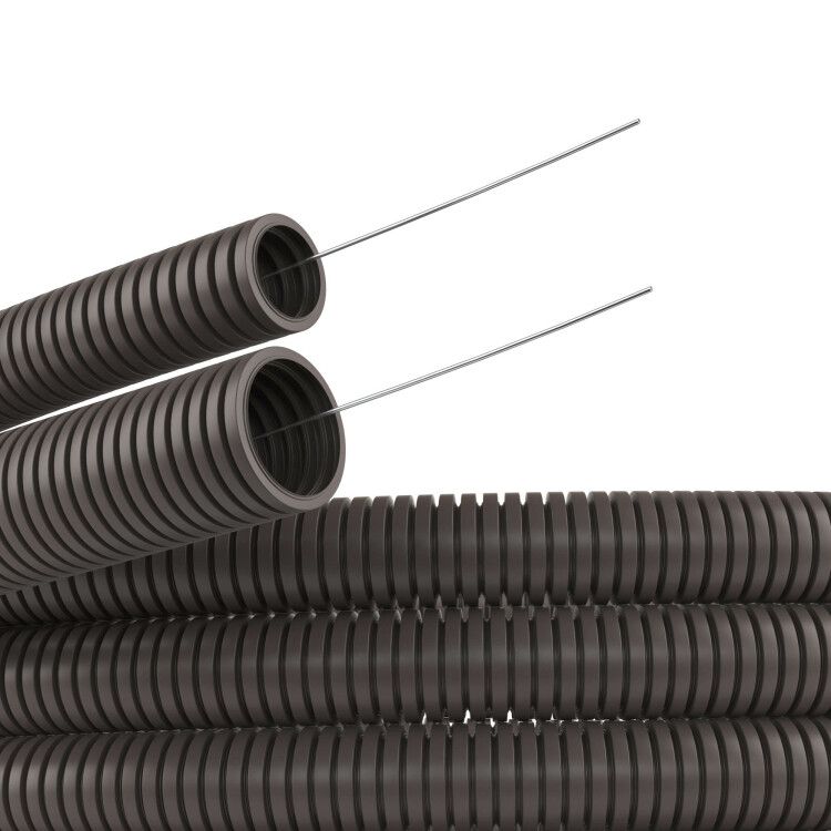 Труба гофрированная ПА 6 d48мм dвнутр.47.4мм dвнешн.54.5мм с протяжкой ПВ-0 темн. сер. (уп.15м) DKC PA614855F0 ДКС