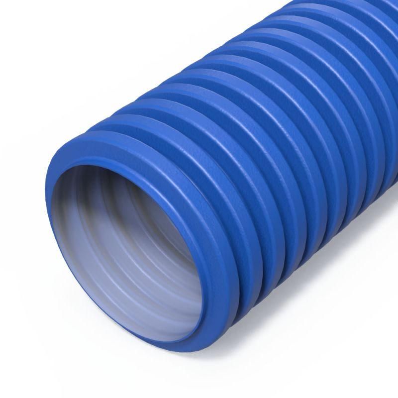 Труба гофрированная двустенная ПНД гибкая вентиляционная голубая (RAL 5012) d90 мм (50м/уп) | PR15.0282 Промрукав Строитель