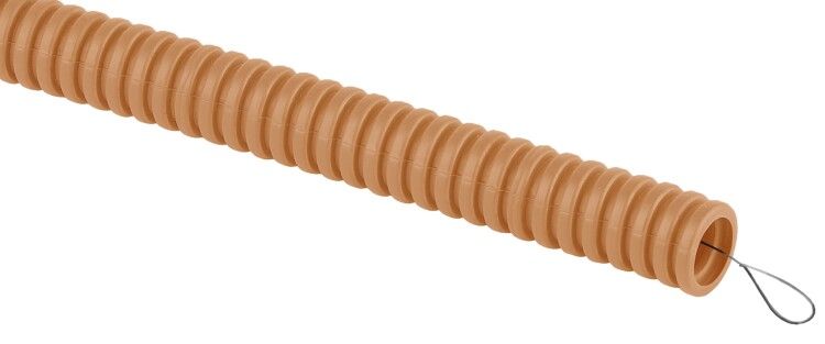 Труба гофрированная ПВХ легкая d25мм с протяжкой сосна (уп.25м) Эра Б0043213