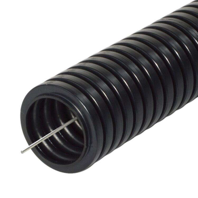 Труба гофрированная полиамидная безгалогенная (HF) стойкая к ультрафиолету черная с защитой диаметр 50 мм (15 м упаковка/паллета) используется для защиты кабельных трасс от механических повреждений, перегрева, влаги, пыли и ультрафиолетового излучения. Подходит для прокладки внутри и вне зданий, в том числе на открытом воздухе. Часто применяется в промышленном станкостроении, робототехнике, автоматизации производственных линий, энергетике и транспорте, где требуется высокая надежность и безопасность.
