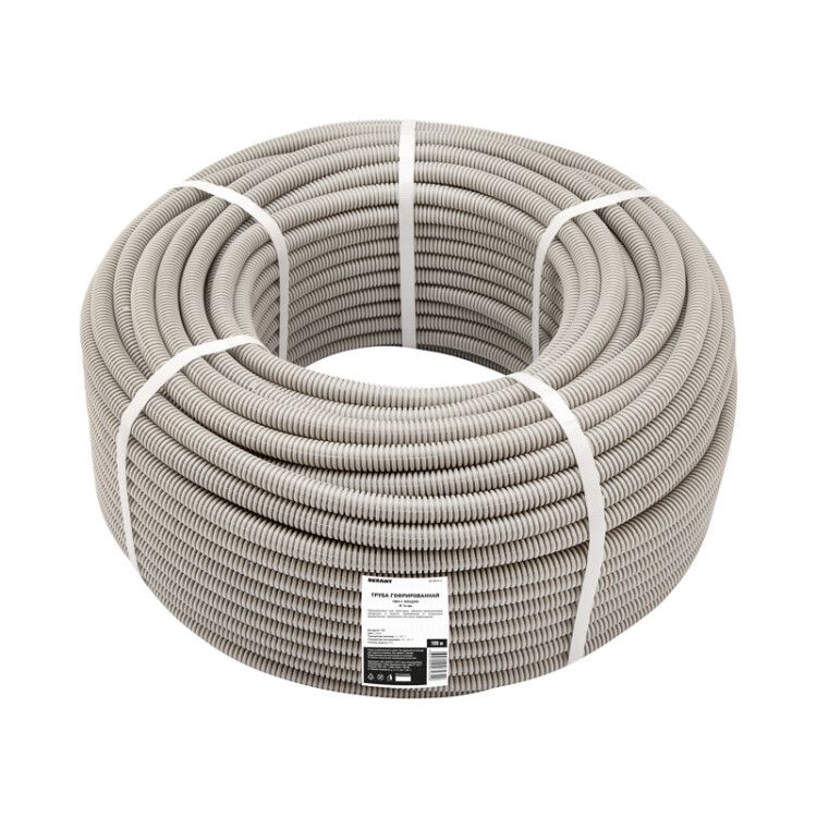 Труба гофрированная из поливинилхлорида (ПВХ) с зондом, диаметр 16 мм, бухта 100 м от Rexant - это гибкий защитный канал для прокладки слаботочных и силовых кабелей в помещениях. Благодаря наличию зонда и устойчивости к механическим нагрузкам, изделие удобно использовать при скрытых и открытых работах. Артикул etm28-0016-2 соответствует требованиям для стационарных установок до 1000 В.