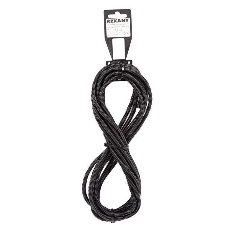 Труба автомобильная гофрированная ПП, 4,6мм, разрезная, бухта 5 м/уп., REXANT - 15-0505 MEET